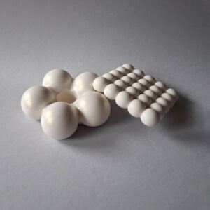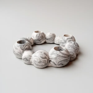 Unesite skulpturalnu lepotu i dinamičnost u svoj prostor sa našim "Aria" svećnjakom. Ovaj izuzetan komad, inspirisan organskim formama i luksuznom estetikom, sastoji se od niza povezanih sfera. Njegova prelepa sivo-bela šara, sa efektom mermera, čini da je svaki komad unikatan.