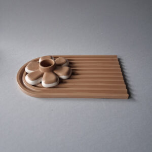 Set se sastoji od "Rainbow" podmetača i "Flower" svećnjaka. Podmetač se može koristiti za nakit, kozmetiku, kao podloga za fotografisanje ili samostalni dekorativni predmet. Svećnjak je savršen za naglašavanje bilo koje površine-stola, police ili komode. Savršeno se uklapa u savremene, skandinavske i boho stilove uređenja.