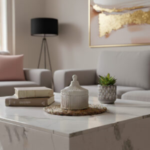 Bilo da je postavite na toaletni stočić, policu u dnevnoj sobi ili komodu u spavaćoj sobi, ova mermerna šatula će sigurno privući poglede i uneti osećaj uređenosti i stila.